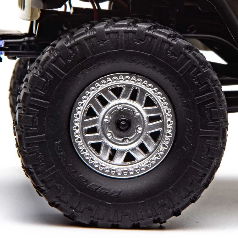 Even at this small scale, the combination of coilover shocks with simulated reservoirs and durable composite suspension links delivers the crawling performance you expect from an Axial® vehicle.