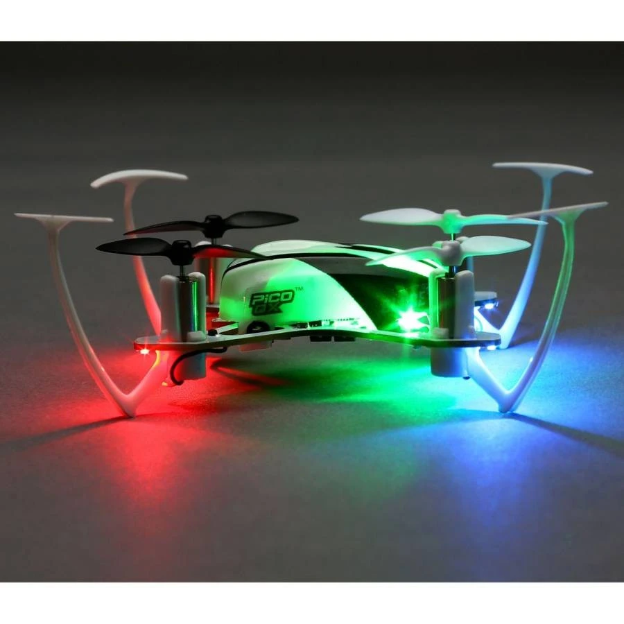 - Compact 8 gram micro quadcopter with internal battery and LED lights
