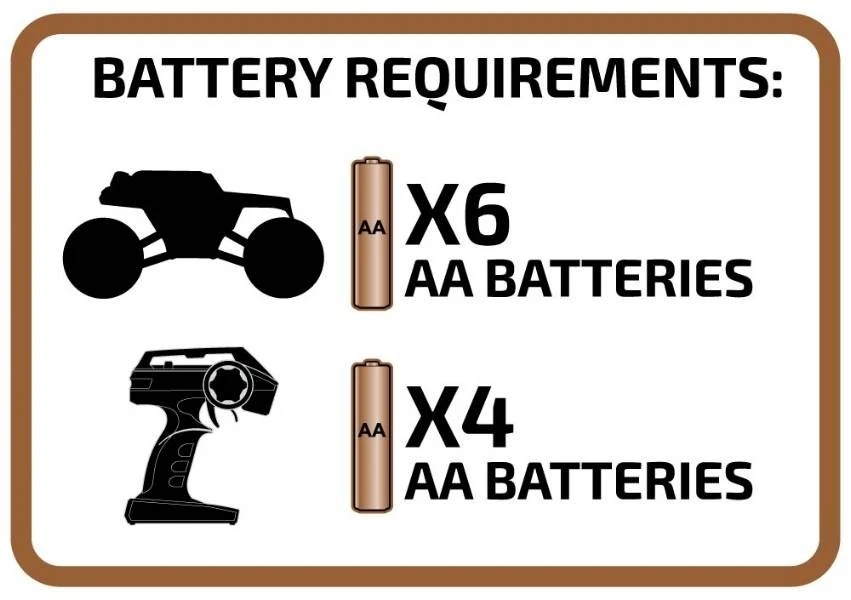 The Trail Hunter comes fully assembled and includes a rechargeable battery and charger. 4AA batteries for transmitter (NOT INCLUDED) are required to start driving.