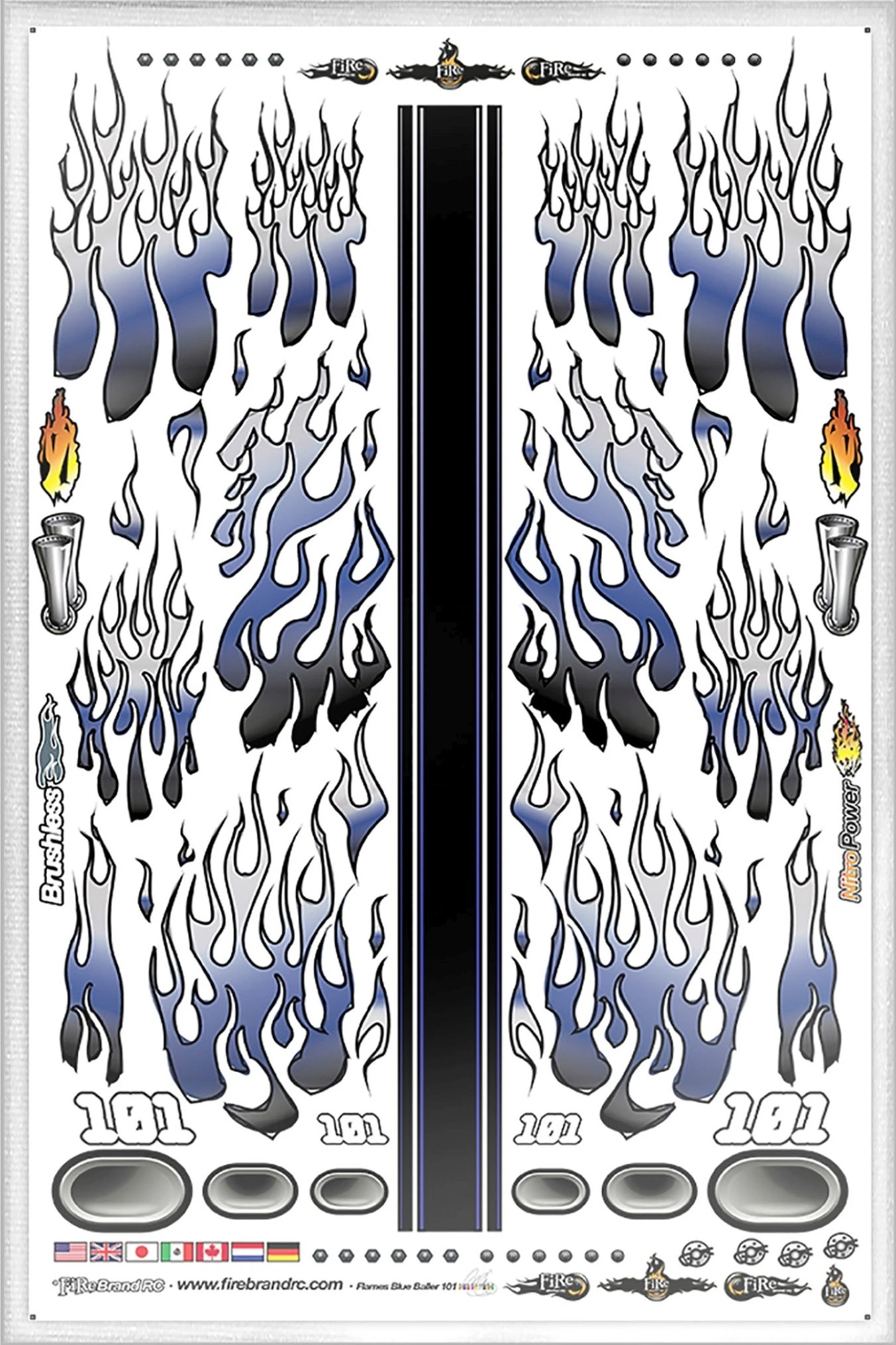 Firebrand RC Flames Ballers Multi-Fit Vinyl Decal Sheet, Blue (8.5×14″)