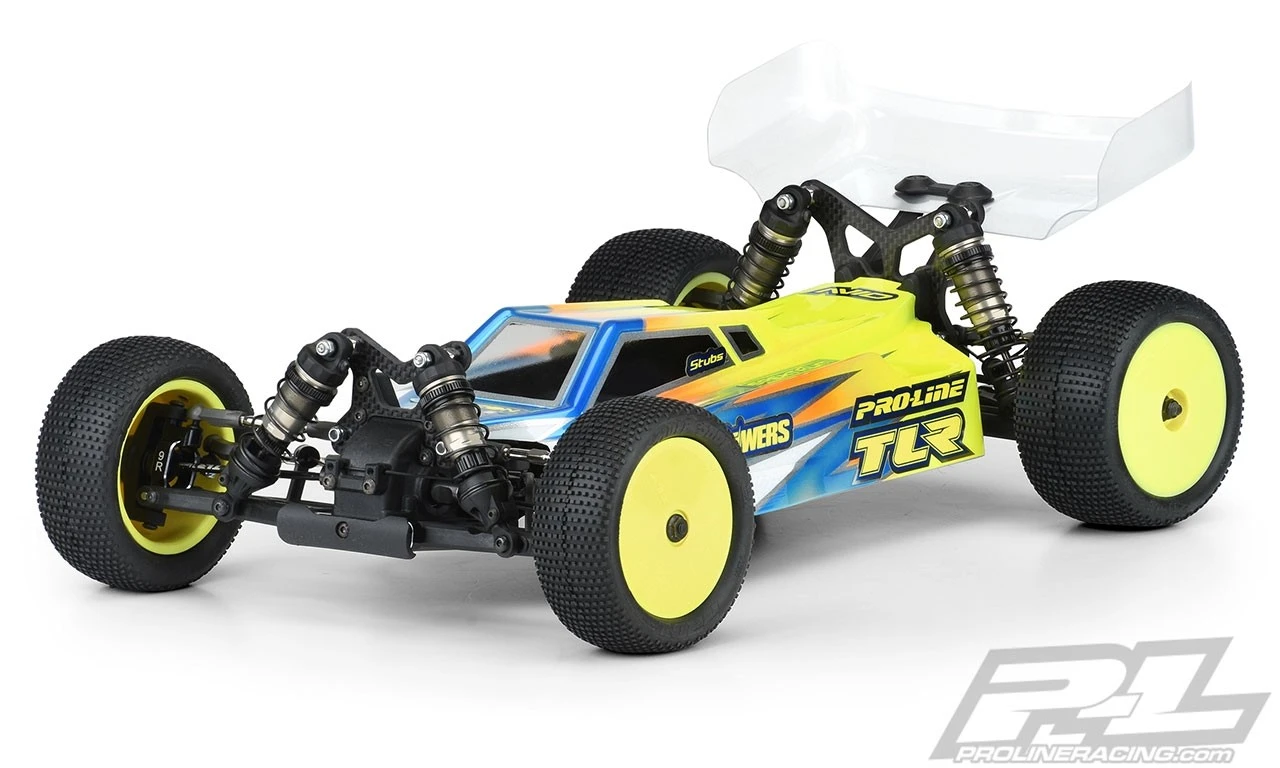 This is an Axis Light Weight Clear Body for TLR® 22X-4™. Introducing the all new Axis series of race bodies for 1:10 buggy, a clean-sheet design from Pro-Line bringing a fresh new look to the class. Designed with the latest in CAD technology, the Axis features a super low-slung design with sharp lines throughout giving it an unmistakable look on the track. The Axis features a cab-forward design which provides enhanced steering response while the small side fins balances out the rear of the car with ideal side-bite. The rear of the Axis body is super low and fits the chassis and bulkhead shape of your race buggy perfectly.