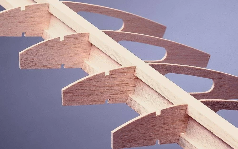 - With the PT-60’s unique “Interlocking I-Beam” wing construction, the ribs plug securely into the center web, followed by grooved top and bottom spars—holding alignment for easy assembly and increasing wing strength