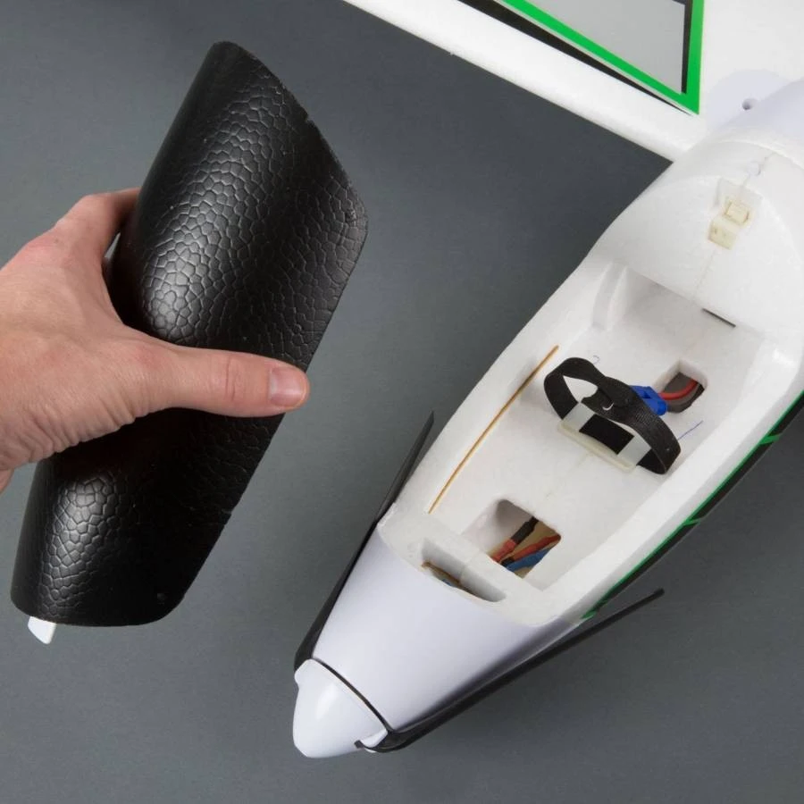 Putting this massive flying machine together couldn’t be easier. All you need is a few minutes and a Phillips-head screwdriver. The bolt-together wing comes in three pieces-a center section with spoilers and two outer sections. The 2-piece, full-flying elevator slides into the tail and bolts together.