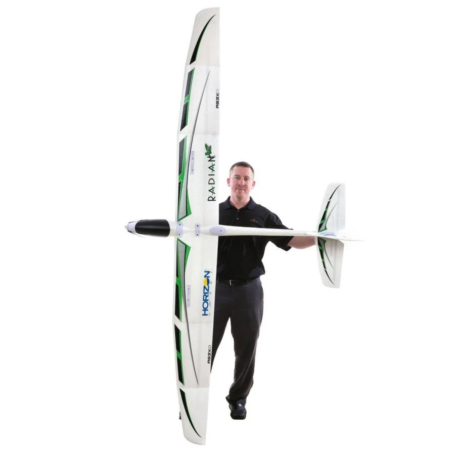 The giant E-Flite® Radian® XL 2.6m motor glider adds a whole new dimension of soaring excitement to the Radian line while staying true to its heritage with simple elevator/rudder/throttle/spoiler controls.
