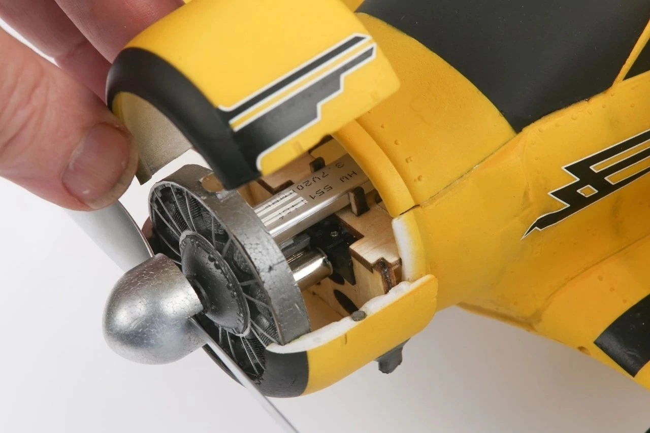 The Beechcraft Model D17 comes fully assembled as an RTF (Ready-To-Fly). Everything needed to fly comes is included in the box. All of the electronics are pre-installed in the scale airframe, such as a 4-in-1 control board, individual servos to control the ailerons and retracts, and a 2.4GHz transmitter that conveniently charges the included 1S 200mAh LiPo battery. Even the AA batteries needed to power the transmitter are included, so the maiden flight of this amazingly detailed, historic airplane can become a reality within minutes of opening the box!
