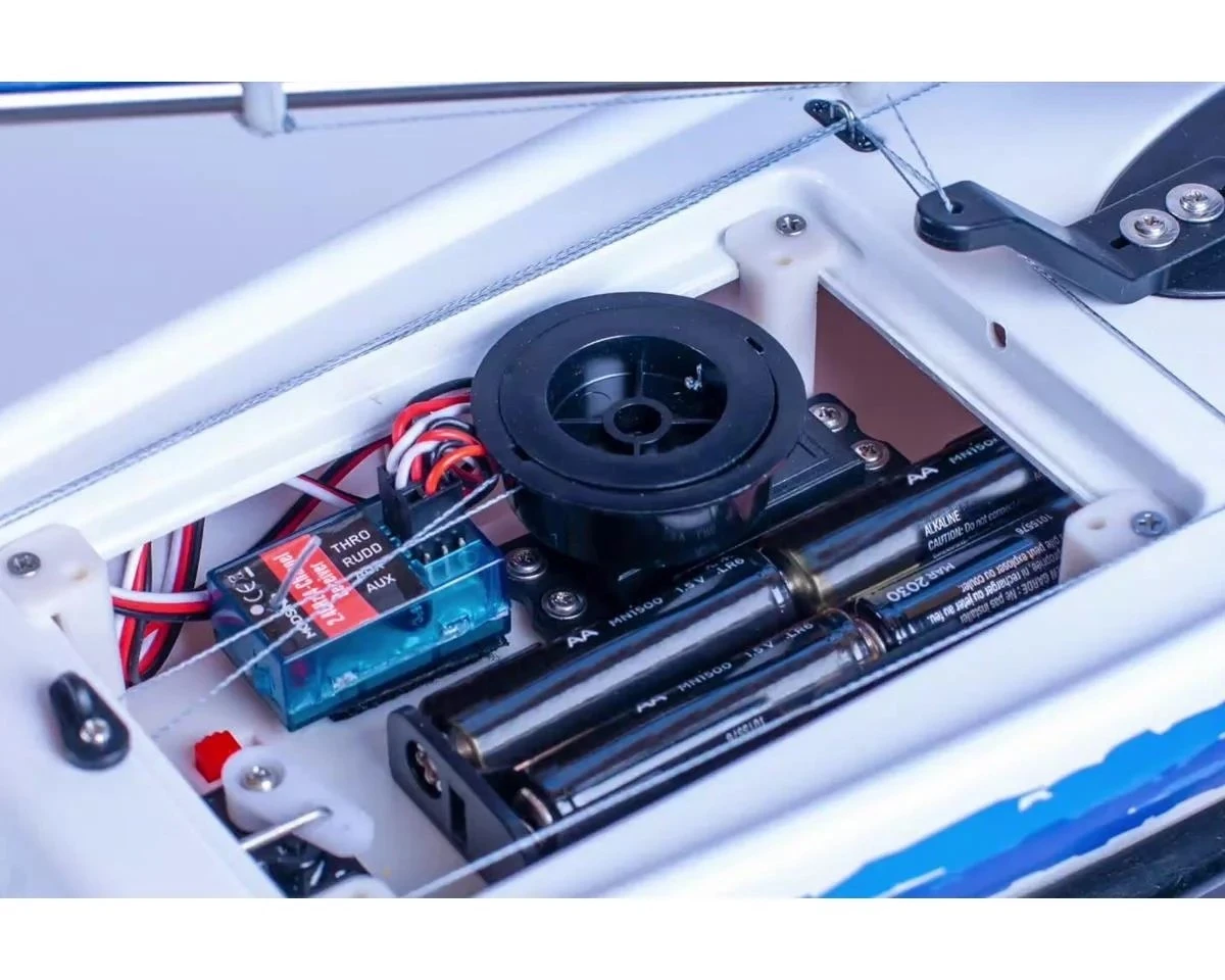 Whether you’re a first timer or have years of experience as an RC boating enthusiast, the Rage RC Eclipse 650 sailboat is the ideal sailboat for you. The Eclipse 650 hull is blow-molded from ABS for added durability and the attractive pre-applied trim design gives it the look of a full-size sailboat when you’re sailing your local lake or pond. For convenience, the Eclipse 650 arrives pre-assembled with the sails partially pre-rigged to help make getting on the water fast and easy. Plus, it’s the ideal size to fit in either the back seat or trunk of your car for heading to your local body of fresh water. For performance, the Eclipse 650 includes a 17g “drum-style” winch servo that provides power and smoother, more scale-like operation than traditional servos.