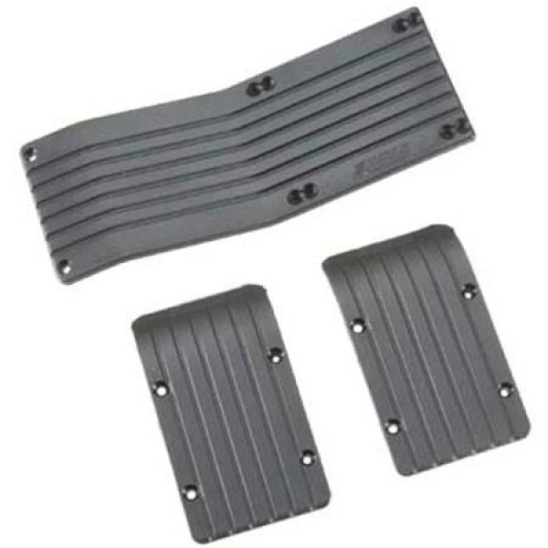 Important Note: RPM skid / wear plates require the use of stock, plastic skid plates, bulkheads and (for center skid plates) chassis braces. RPM skid plates will work with most aftermarket aluminum front & rear skid plates but RPM guarantees the fit only when used with stock parts.