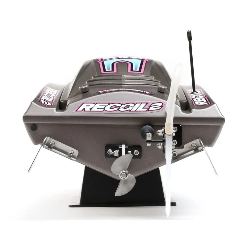 The Pro Boat® Recoil 2 26-inch BL Ready-to-Run Deep-V picks up where the original Recoil left off and brings tremendous excitement with new aggressive styling, a more advanced self-righting feature, and better performance. The Spektrum™ 2300Kv Brushless Outrunner Marine Motor coupled with the high-powered 100 Amp Spektrum Brushless ESC can produce 35+ MPH of wake-inducing excitement. Plus, the Recoil 2 motor features an integrated weight on the outrunner that eliminates the need for the weighted coupler, which was the key to self-righting. With just a single press, your boat will flip upright after a wipeout. This new hull design is unique to the Recoil 2. Nobody else has it! Everything you need you need is included in the box. Four-channel, 2.4ghz transmitter and receiver, ESC, Servo, Spektrum Smart Battery and Charger, Boat Stand, and even the AA batteries. The Spektrum Smart 3S 3200mah battery and Spektrum S120 USB Smart Charger are a perfect start to get into the hobby. This Smart charger utilizes any USB port for charging, giving you a versatile charging solution no matter if you are a new or seasoned boater. The Recoil 2 also features a high-impact ABS molded hull and canopy with aluminum thumb screw canopy locks, a durable modular interior, and an aluminum offset rudder and propeller strut. With the latest technological advances and worry-free self-righting, the lake is yours with the Pro Boat Recoil 2 26-inch BL Ready-to-Run Deep-V.