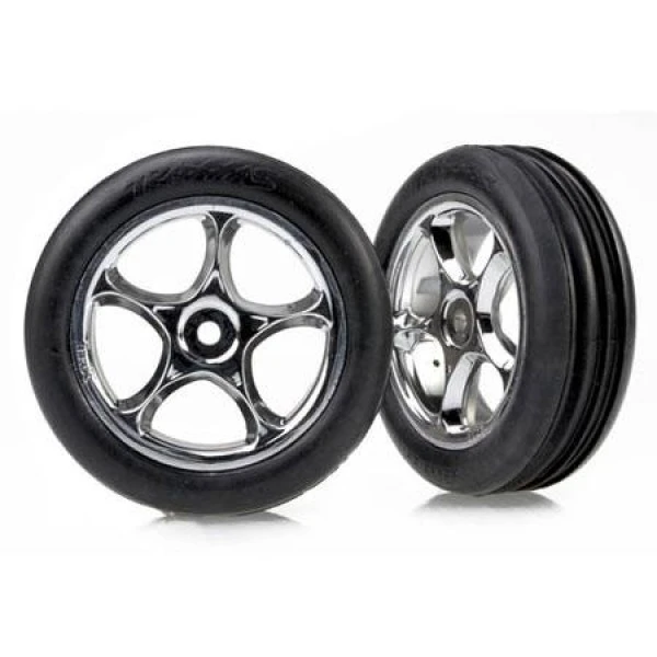 Traxxas Front Alias Ribbed Tires & Tracer 2.2″ Chrome Wheels (Bandit) (2)