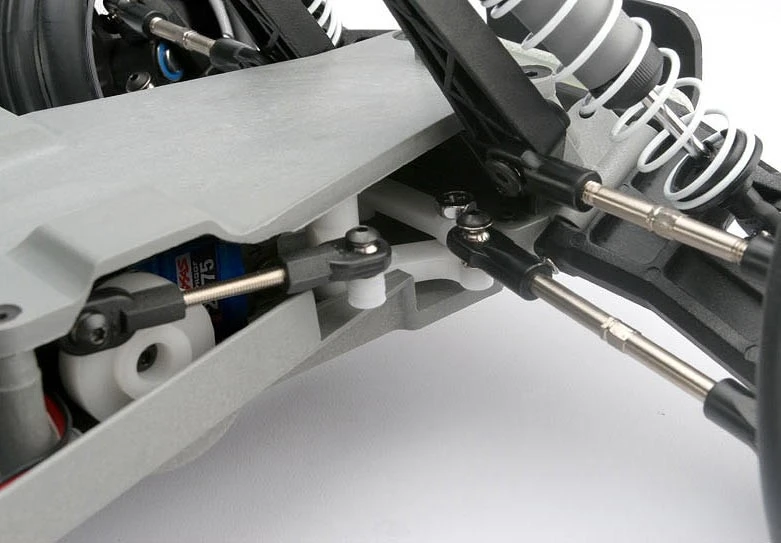Factory fitted, heavy-duty steel turnbuckles allow camber and toe tuning. Rustler VXL is completely adjustable right out of the box to fine tune handling agility and high-speed performance. Captured rod ends provide unmatched durability and won’t pop off.